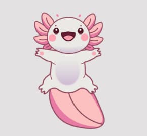 #F8C0C0), маскот-аксолотль,